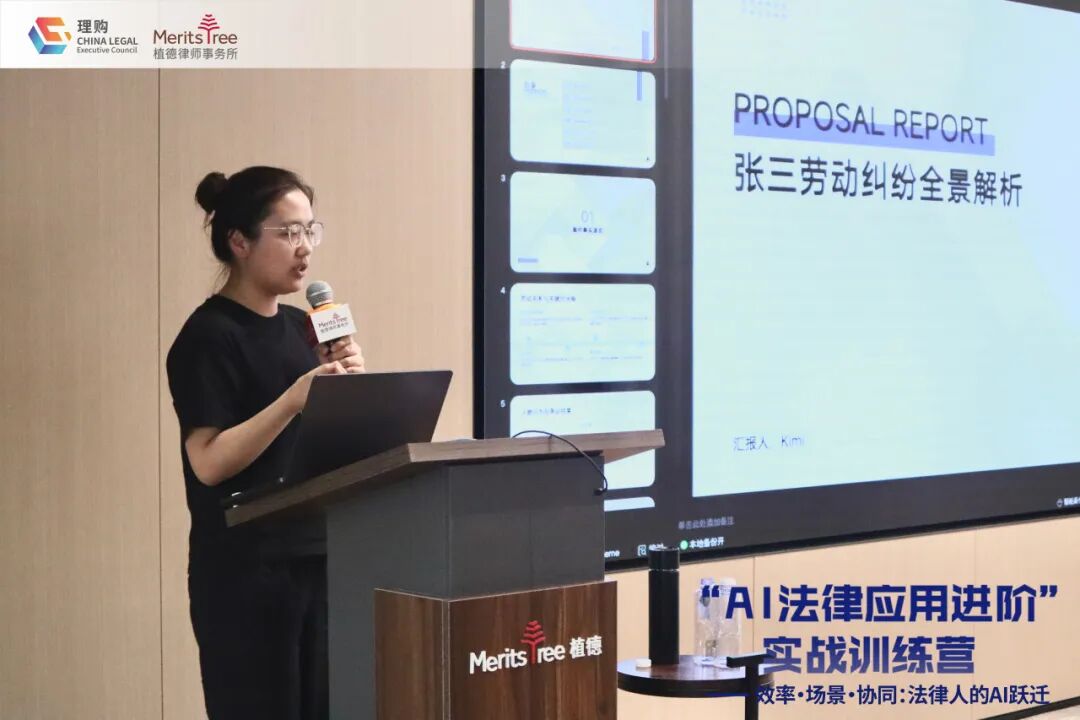 随后,每个小组依次上台展示成果,分享实操心得与创新方法。潘律师对每组展示进行了全面而细致的点评,并提出优化建议,指导学员思考如何将AI方法融入日常法务工作。